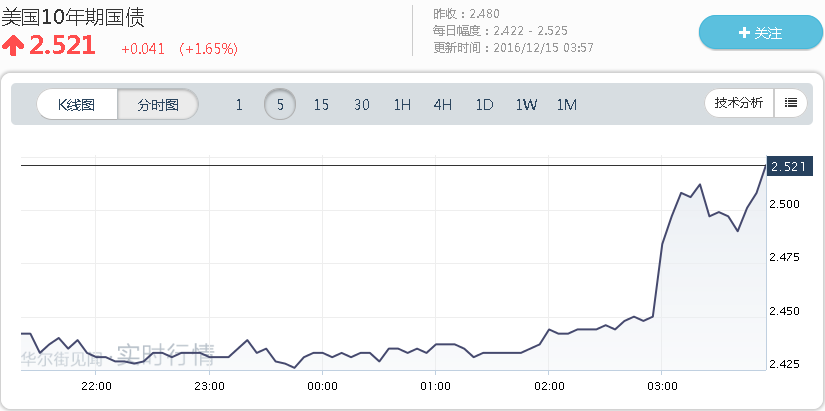 同时,每经小编(微信号:nbdnews)小编发现,美联储宣布加息后,美国10年期国债收益率也大幅上涨至2.521,创下2015年7月以来新高——债市的屠杀还在持续,因为国债收益率的上升意味着国债价格的下跌,在11月份,全球债券市场失血量高达11.7万亿美元。