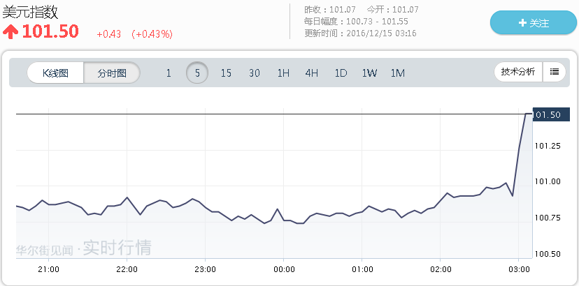 首先,美元指数迅速拉升至101.50点。