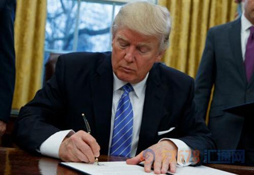图:美国总统特朗普签署上任后的第一份行政命令