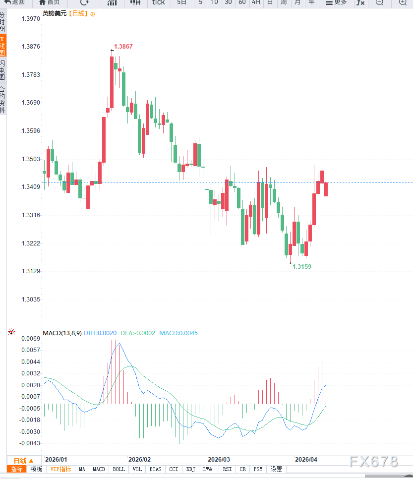 尽管英国央行偏鹰立场为英镑提供一定支撑,但能源冲击带来的经济压力限制其上行空间。未来走势将取决于美元强势是否延续以及英镑能否在关键支撑区域企稳。