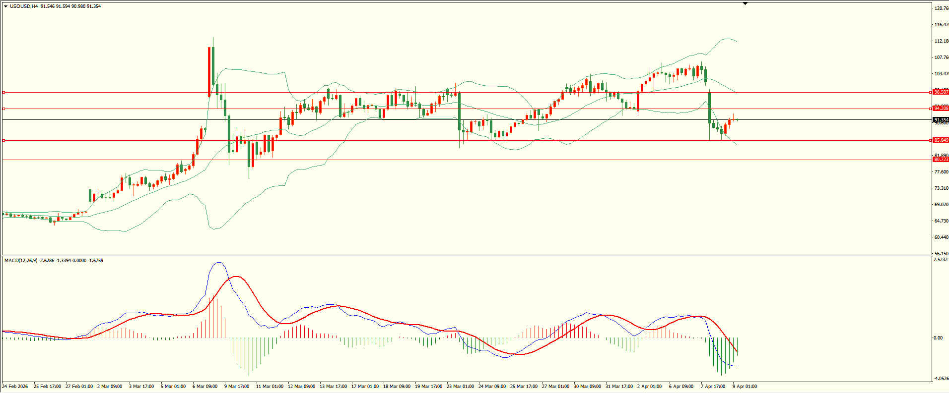 原油昨日延续下行调整,盘中回落至第一支撑略有反复,日线报收中阴线,前低支撑犹存,下破后本轮调整方可继续,从4H来看,布林中轨偏下,MACD零轴附近运行,日内上方首要阻力94.20,第二阻力98.50,下方支撑85.85,80.70-80,保持在第一阻力下方短线有望回测第一支撑。