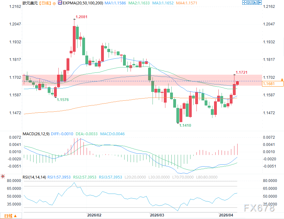 欧元/美元短期在1.1650-1.1720区间震荡,反弹动能依赖风险情绪改善与美元走弱,但地缘不确定性和即将出炉的美国重磅通胀数据构成双重考验。